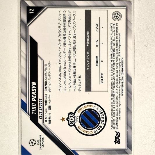 Tibo Persyn 2022 Rookie RC #12 Asian version Soccer Football Club Brugge Excellent/mint sleeved