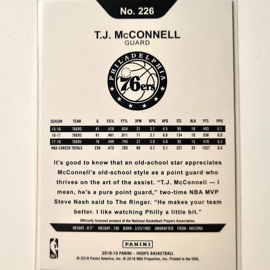 TJ McConnell 2018-19 Panini Hoops seltene lila Ausgabe Nr. 226 NBA Basketball Philadelphia 76ers gut – sehr gut mit Ärmeln