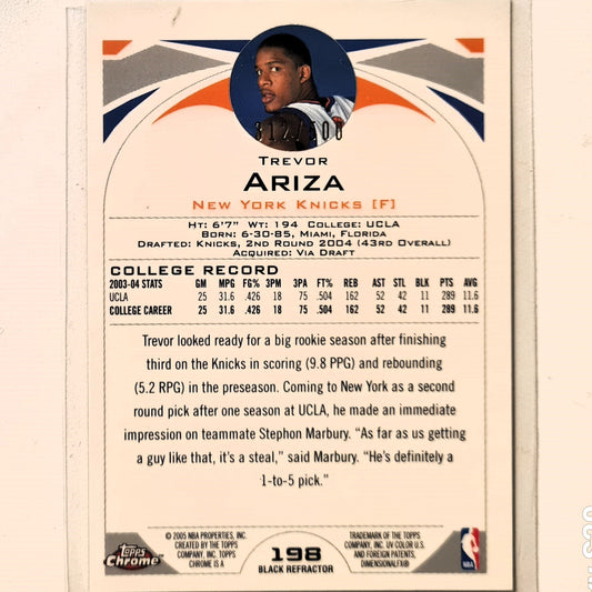 Trevor Ariza 2005 Topps Chrome Rookie RC 312/500 black refractor #198 NBA Basketball New York Knicks Excellent sleeved
