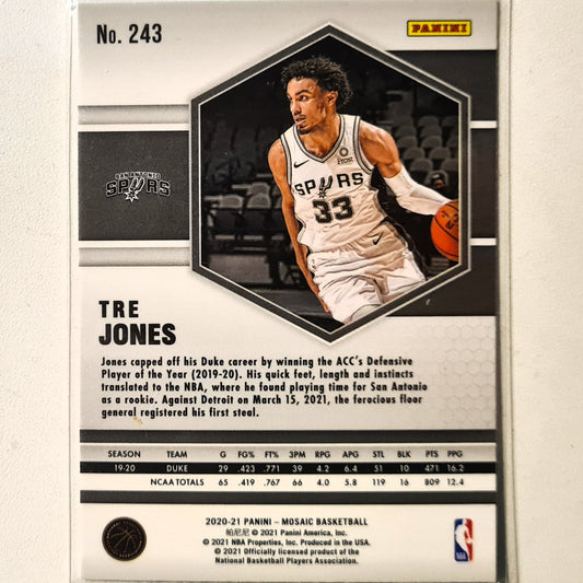 Tre Jones 2020-21 Panini Mosaic Rookie RC #243 NBA Basketball San Antonio Spurs Excellent sleeved
