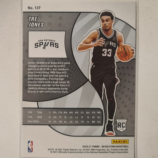 Tre Jones 2020-21 Panini Revolution Rookie RC #137 NBA Basketball San Antonio Spurs MINT sleeved