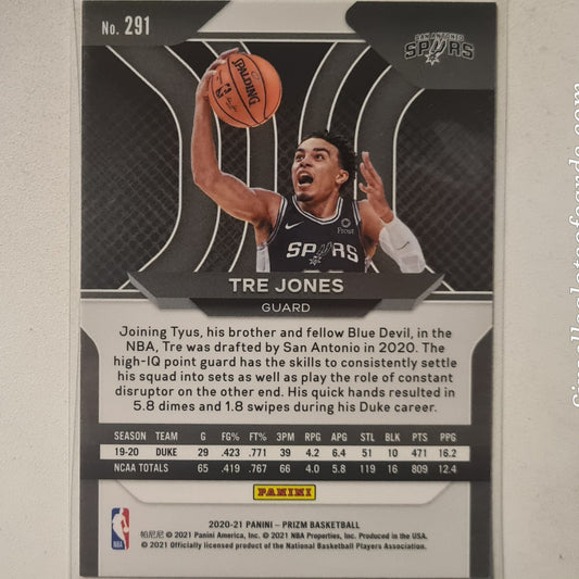 Tre Jones 2020-21 Panini Prizm Rookie RC #291 NBA Basketball San Antonio Spurs MINT sleeved