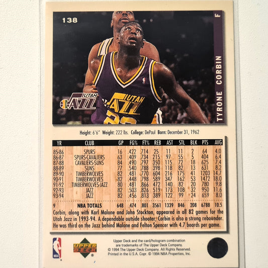 Tyrone Corbin 1994 Upper-Deck seltene silberne Signature Series Collectors Choice #138 NBA Basketball Utah Jazz Hervorragende Hüllen
