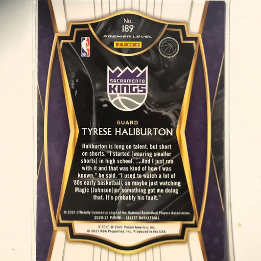 Tyrese Haliburton 2021 Panini Select premier level Rookie RC #189 NBA Basketball Sacramento kings excellent/mint Sleeved