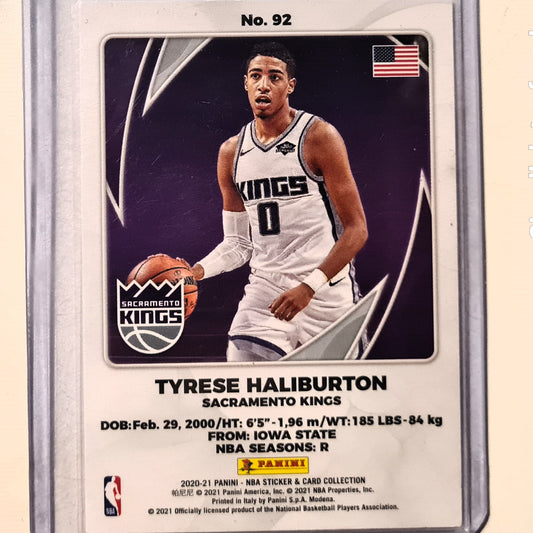 Tyrese Haliburton 2020-21 Panini Sticker card collection Rookie RC #92 NBA Basketball Sacramento Kings Excellent Sleeved