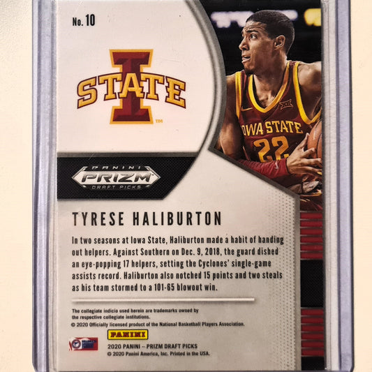Tyrese Haliburton 2020-21 Panini Prizm Draft Picks Rookie RC #10 NBA Basketball Sacramento Kings Iowa State Excellent Sleeved