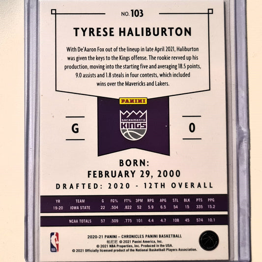 Tyrese Haliburton 2020-21 Panini Chronicles Rookie RC #103 NBA Basketball Sacramento Kings Iowa State Excellent Sleeved