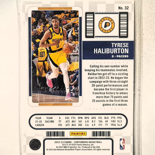 Tyresse Halliburton 2022-23 Panini Contenders season ticket #32 NBA Basketball Indiana Pacers Excellent