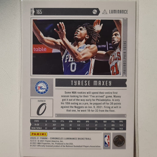 Tyrese Maxey 2020-21 Panini Luminance Rookie RC #165 NBA Basketball Philadelphia 76ers Excellent