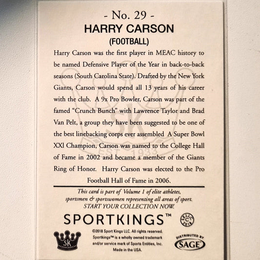 Harry Carson 2018 Sportkings Sport Kings Gum #29 NFL American Football New York Giants Excellent/mint Sleeved