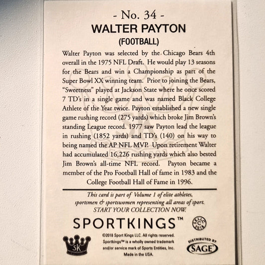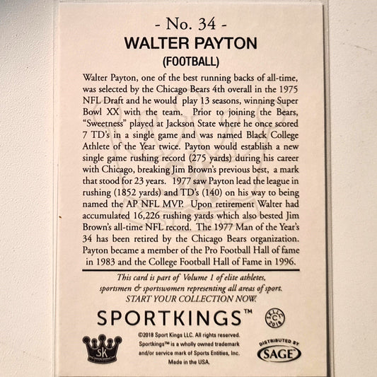 Walter Payton 2018 Sportkings Sport Kings Gum #34 NFL American Football Chicago Bears Excellent/mint Sleeved