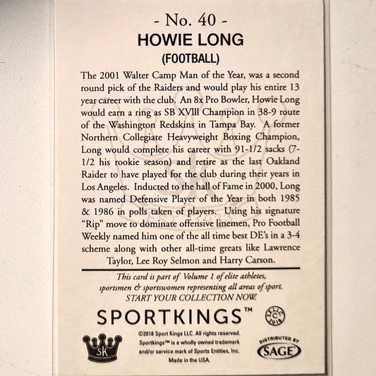 Howie Long 2018 Sportkings Sport Kings Gum #40 NFL American Football Raiders Excellent/mint Sleeved