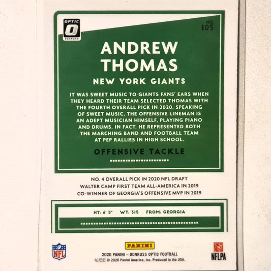 Andrew Thomas 2020 Panini Donruss Optic Rookie RC #103 NFL American Football New York Giants Excellent sleeved
