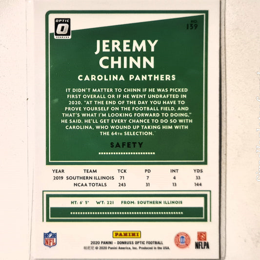 Jeremy Chinn 2020 Panini Donruss Optic Rookie RC #139 NFL American Football Panthers Excellent sleeved
