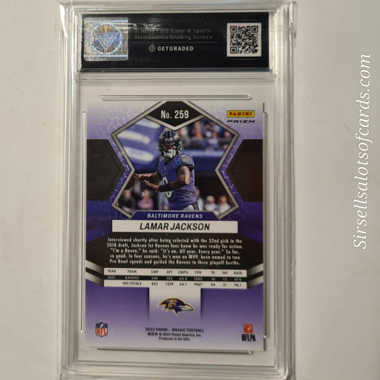 Lamar Jackson 2022 Panini Mosaic green prizm #259 American football NFL Baltimore Ravens get graded mint 9 slabbed
