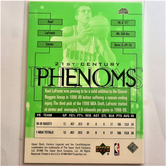 Raef LaFrentz 1998 Upper Deck 21st Century Legends Phenoms #69 NBA Basketball Denver Nuggets mint Sleeved