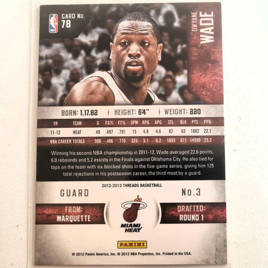 Dwayne Wade 2012-13 Panini Threads #78 NBA Basketball Miami Heat VGC+ Sleeved