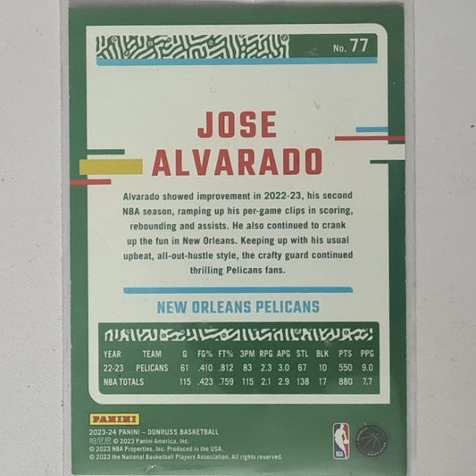 Jose Alvarado 2023-24 Panini Donruss silver laser 022/149 #77 NBA Basketball New Orleans Pelicans ex-mint sleeved
