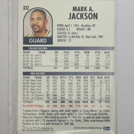 Mark Jackson 1995 Skybox NBA Hoops #332 NBA Basketball Indiana Pacers sleeved