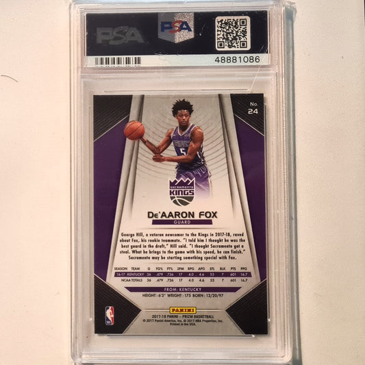 De'Aaron Fox 2017-18 Panini Prizm Rookie RC #24 NBA Basketball Sacramento Kings PSA 9 Mint graded slab