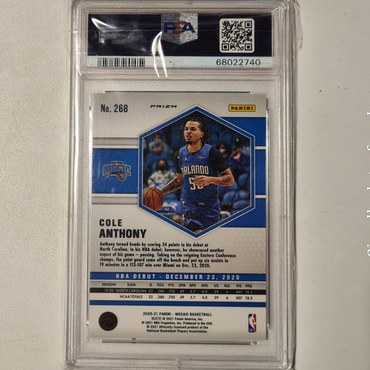 Cole Anthony 2020-21 Panini Mosaic green reactive debut Rookie RC #268 NBA Basketball Orlando Magic PSA 9 GRADED SLAB