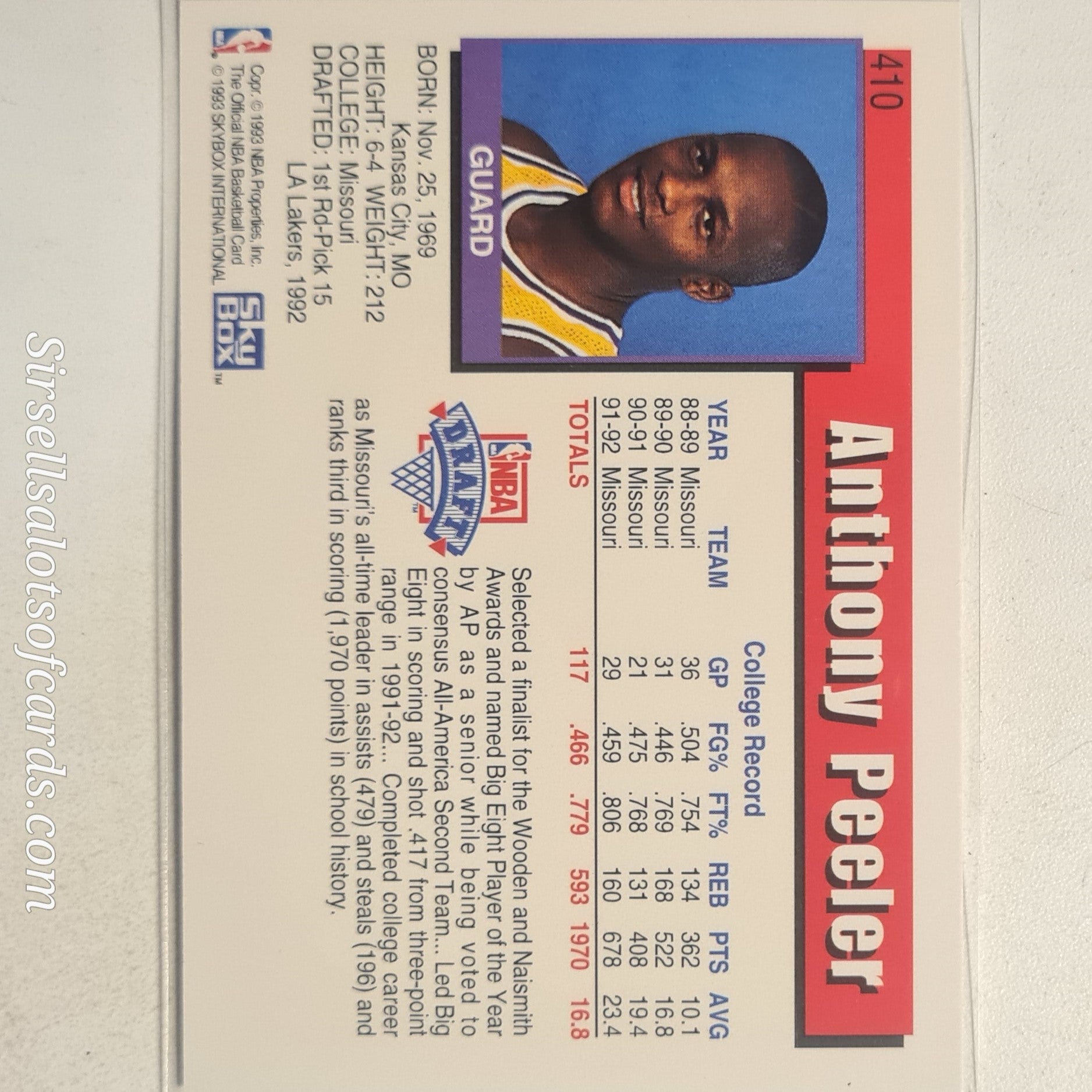 Anthony Peeler 1993 NBA Hoops Rookie RC #410 NBA Basketball LA Lakers Ex- mint sleeved