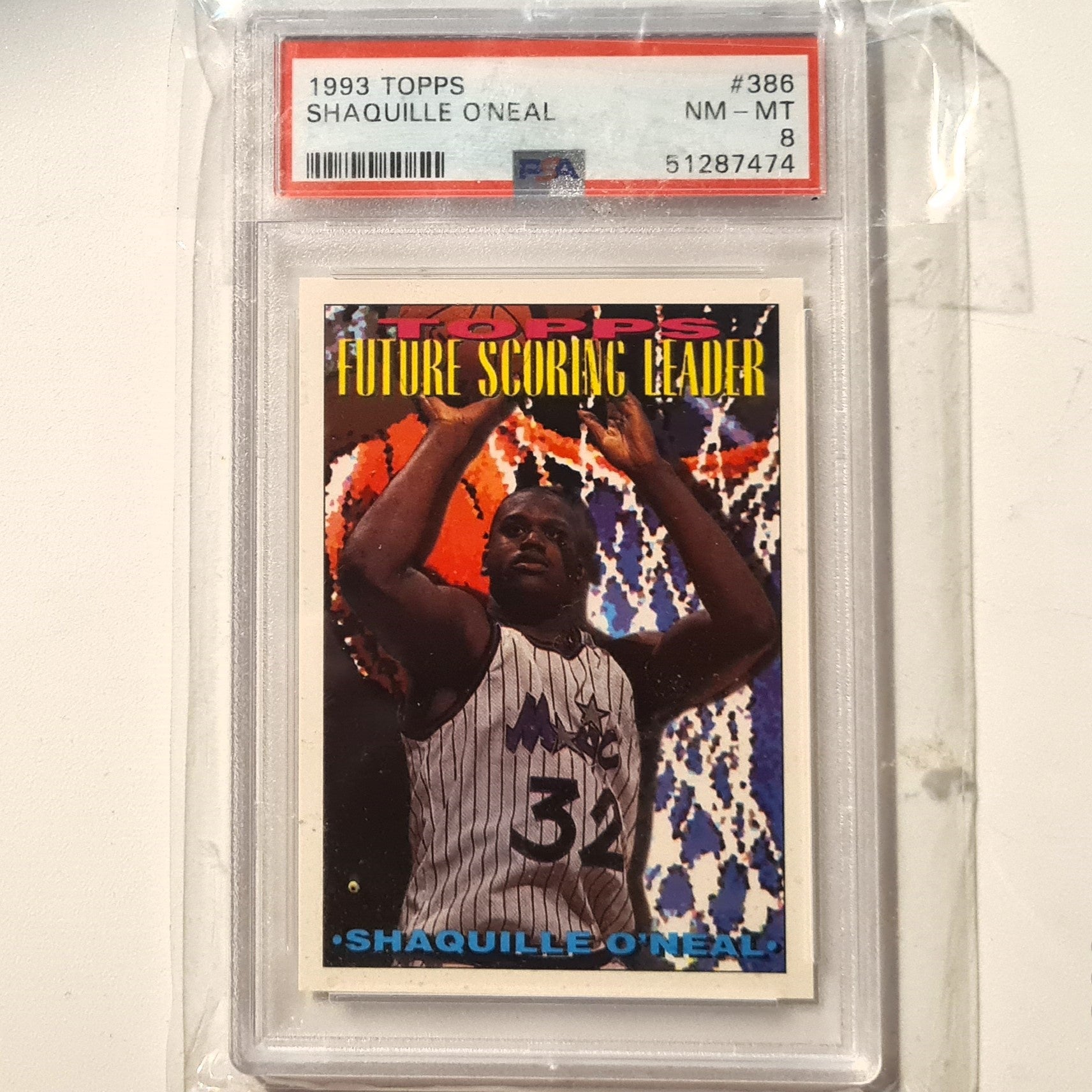 Shaquille O'Neal 1994 Topps Future scoring leader #386 NBA Basketball Orlando Magic PSA 8 near mint/mint Graded Slab