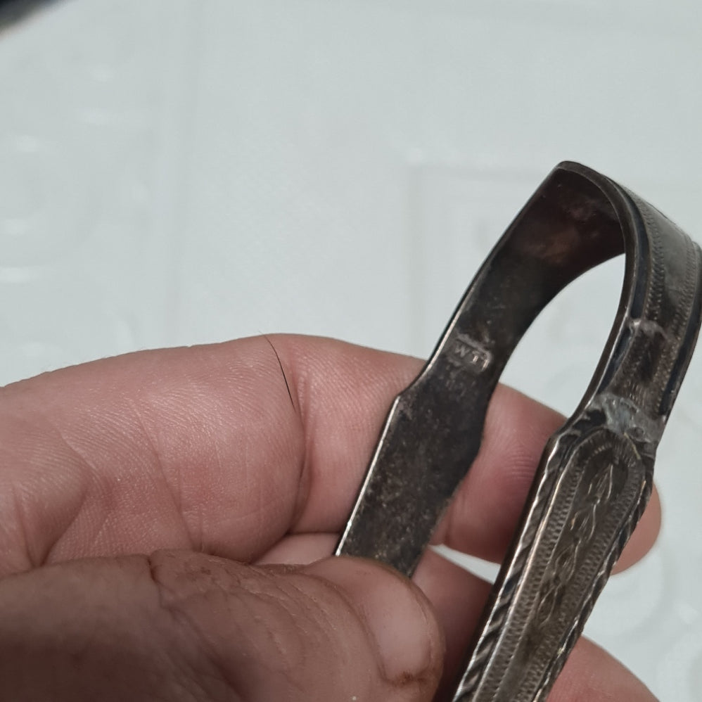 Antique Sterling silver Sugar Tongs WT makers stamp Lion hall mark 28.5 grms