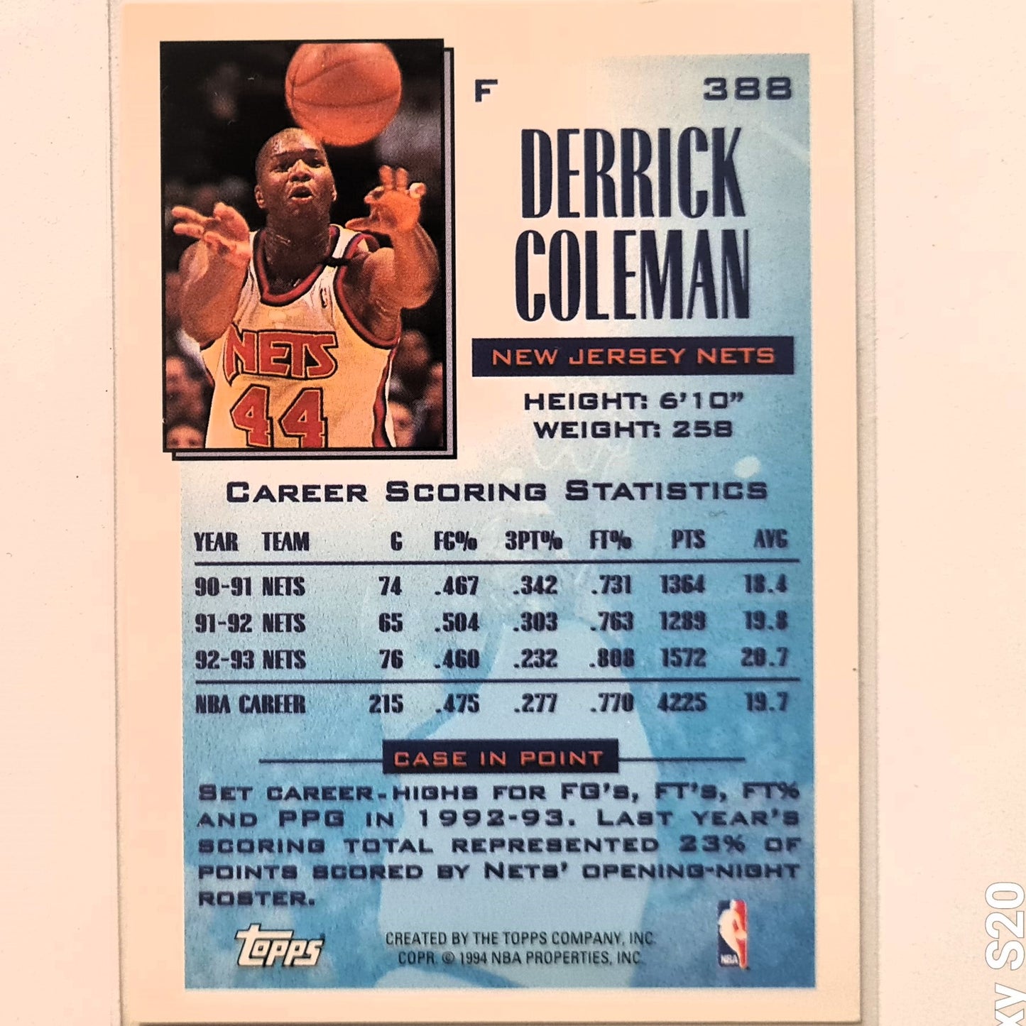 Derrick Coleman 1994 Topps Gold future Scoring Leader #388 NBA Basketball New Jersey Nets Excellent Sleeved