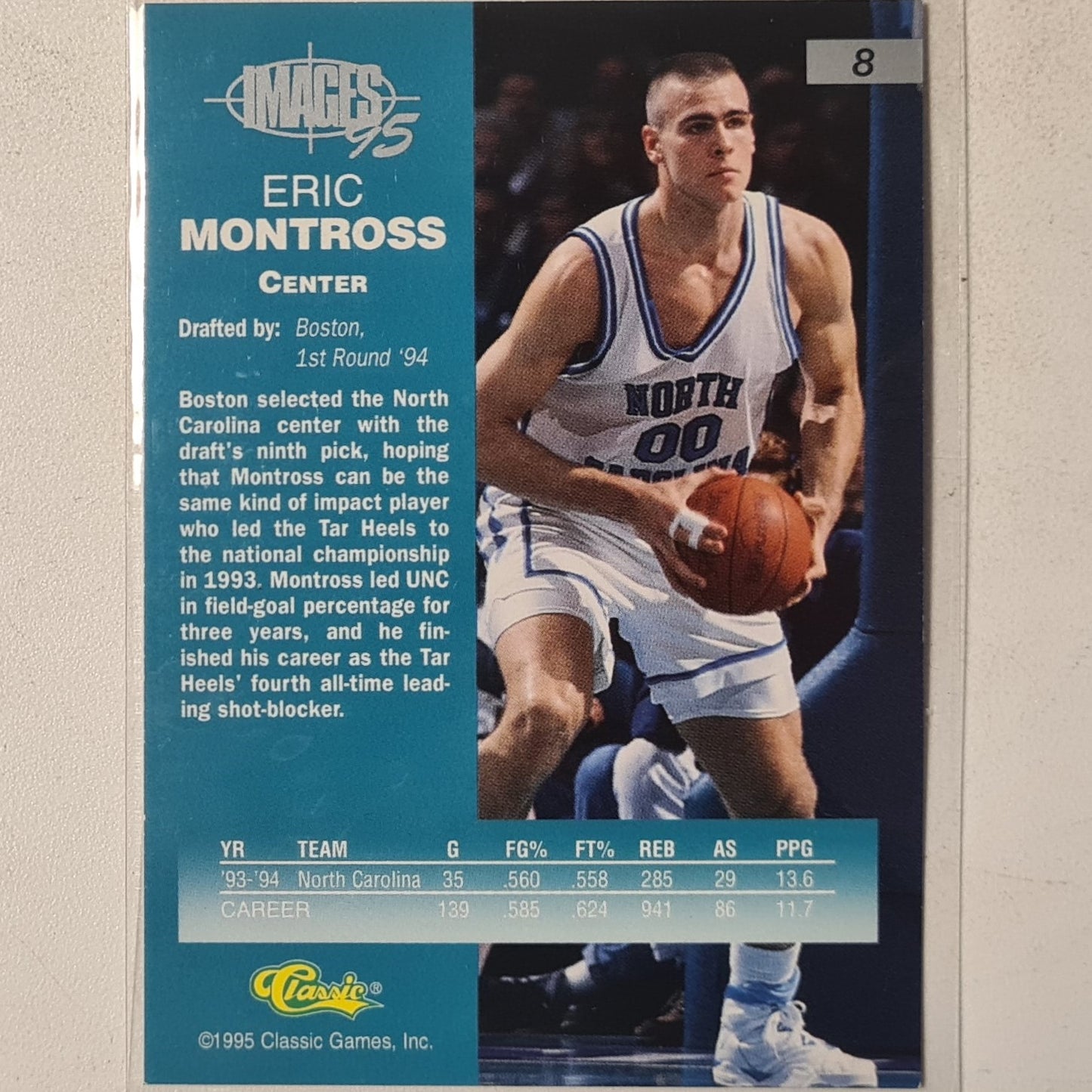 Eric Montross 1995 Classic Images 95 rookie RC #8 NBA Basketball North Carolina Excellent