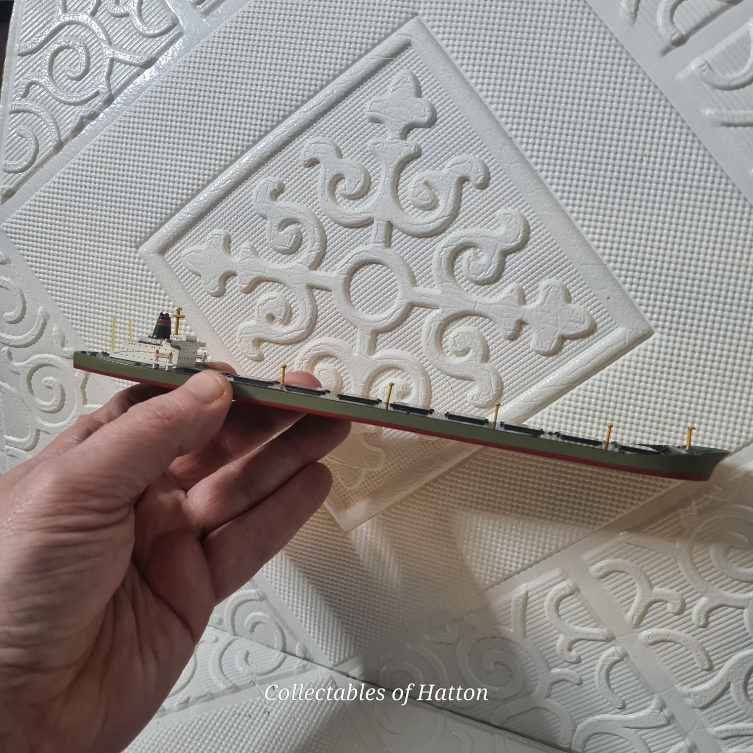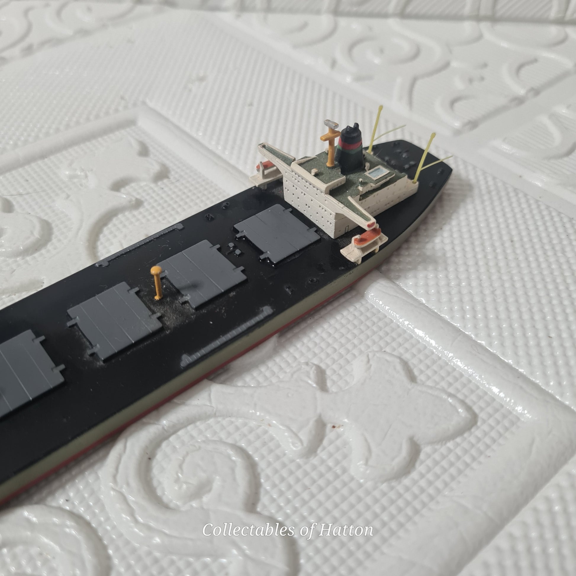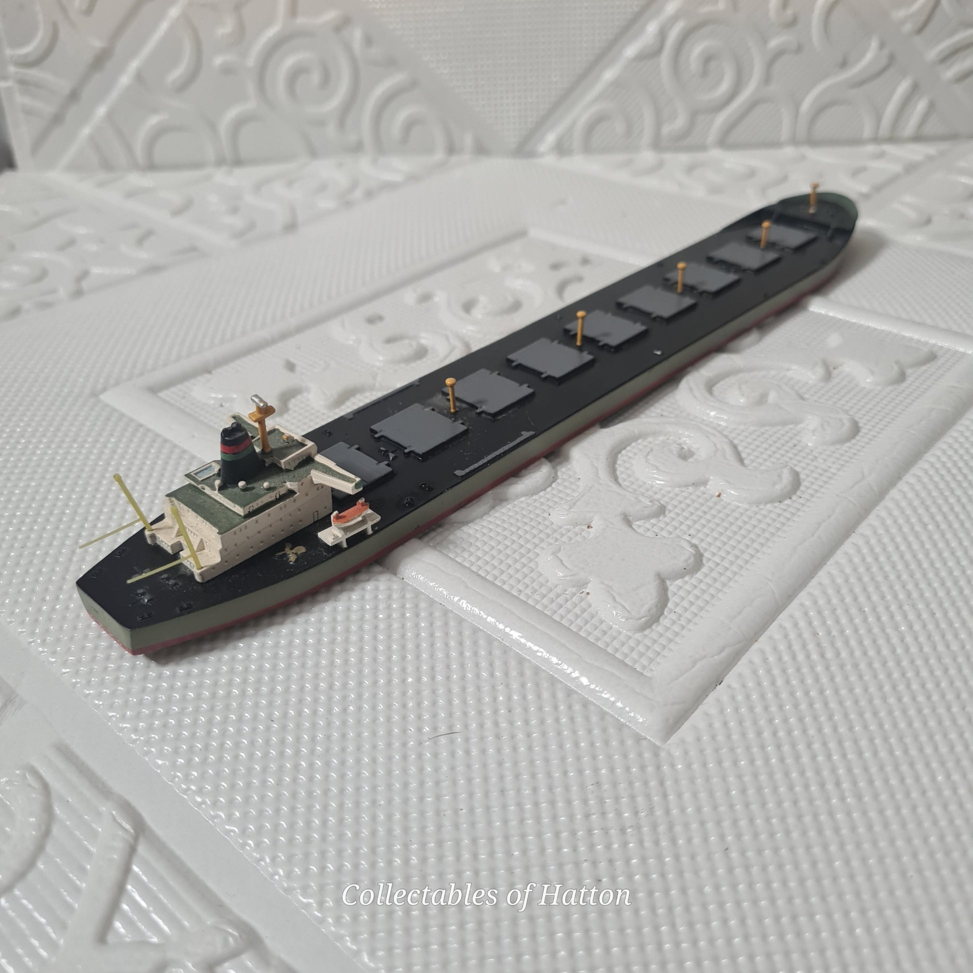 Discover this exceptional Hansa S 223 waterline model of the "Stadt Bremen" tanker, crafted at 1:1250 scale in rare model. This loose example showcases impressive detail and authenticity, making it a standout addition to any maritime model collection. The Stadt Bremen represents a significant vessel in shipping history, and this vintage piece captures her elegance beautifully. Whether you're a seasoned collector or passionate about nautical heritage, this model offers genuine character and quality craftsmanship. A wonderful opportunity to own a piece of classic model ship artistry.