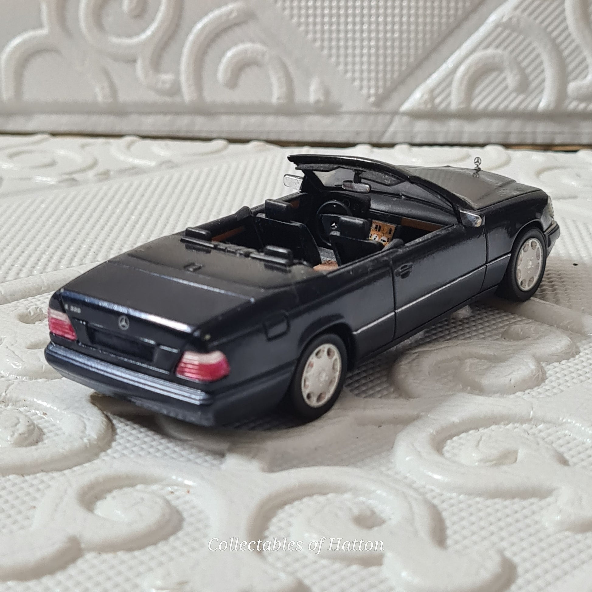 Discover this stunning Herpa 1:43 scale diecast model of the classic Mercedes-Benz E320 Cabriolet in striking blue. This loose, unboxed example showcases excellent condition with crisp detailing and authentic styling that captures the elegance of the original vehicle. Perfect for collectors seeking quality die-cast models or enthusiasts who appreciate precision automotive replicas. A fantastic addition to any collection, whether you're building a Mercedes showcase or expanding your Herpa lineup.