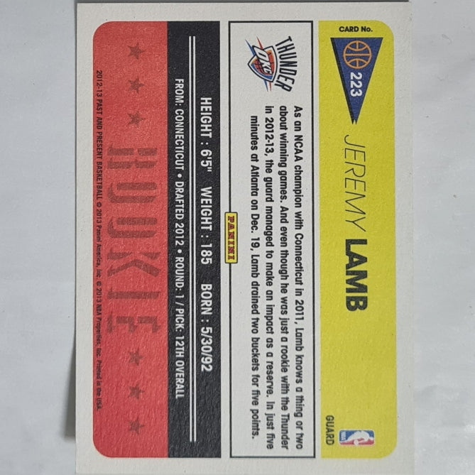 Jeremy Lamb 2012-13 Panini Past and Present Rookie RC #223 NBA Basketball Oklahoma City Thunder ex-mint sleeved