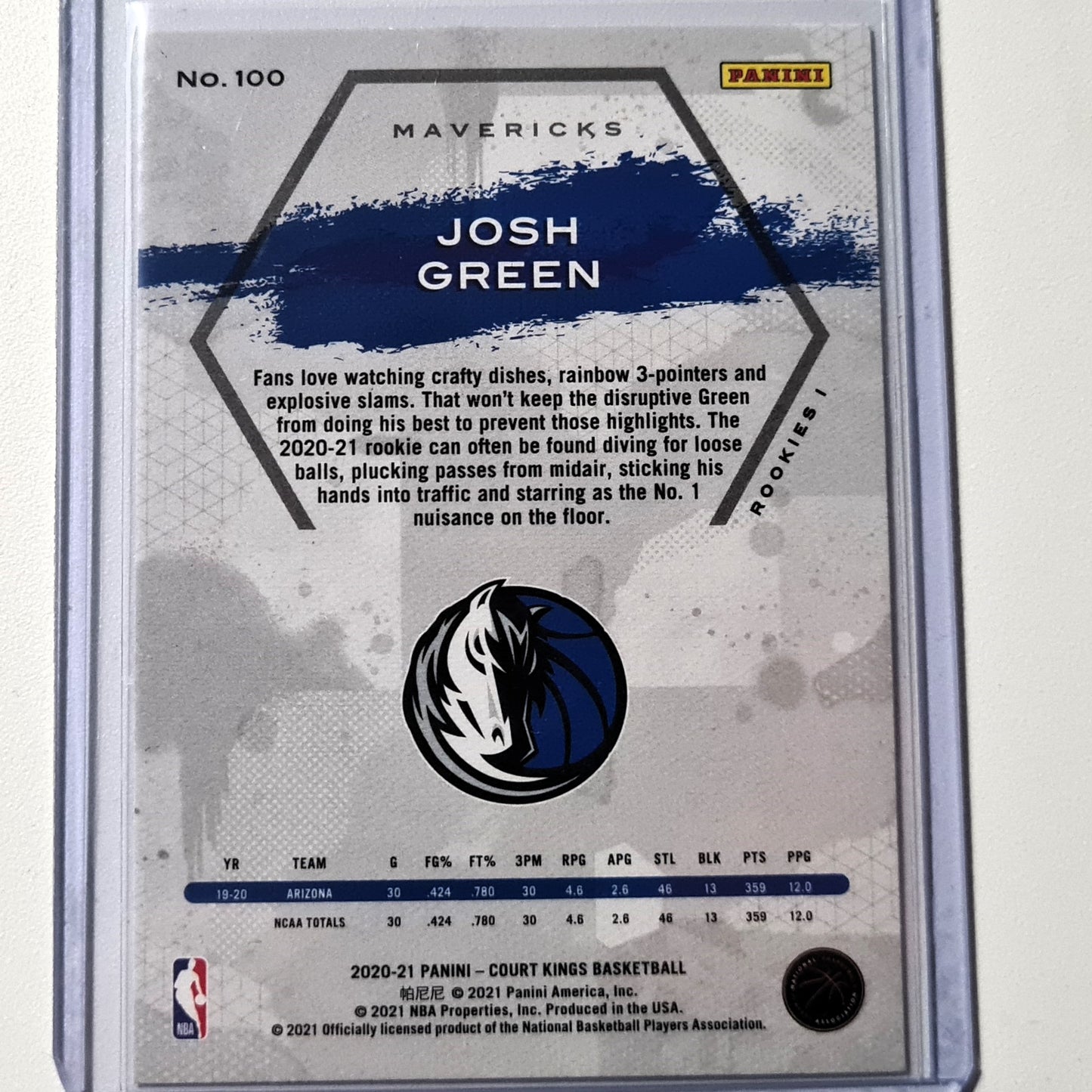 Josh Green 2020-21 Panini Court Kings Rookie RC #100 NBA Basketball Dallas Mavericks Mint Sleeved