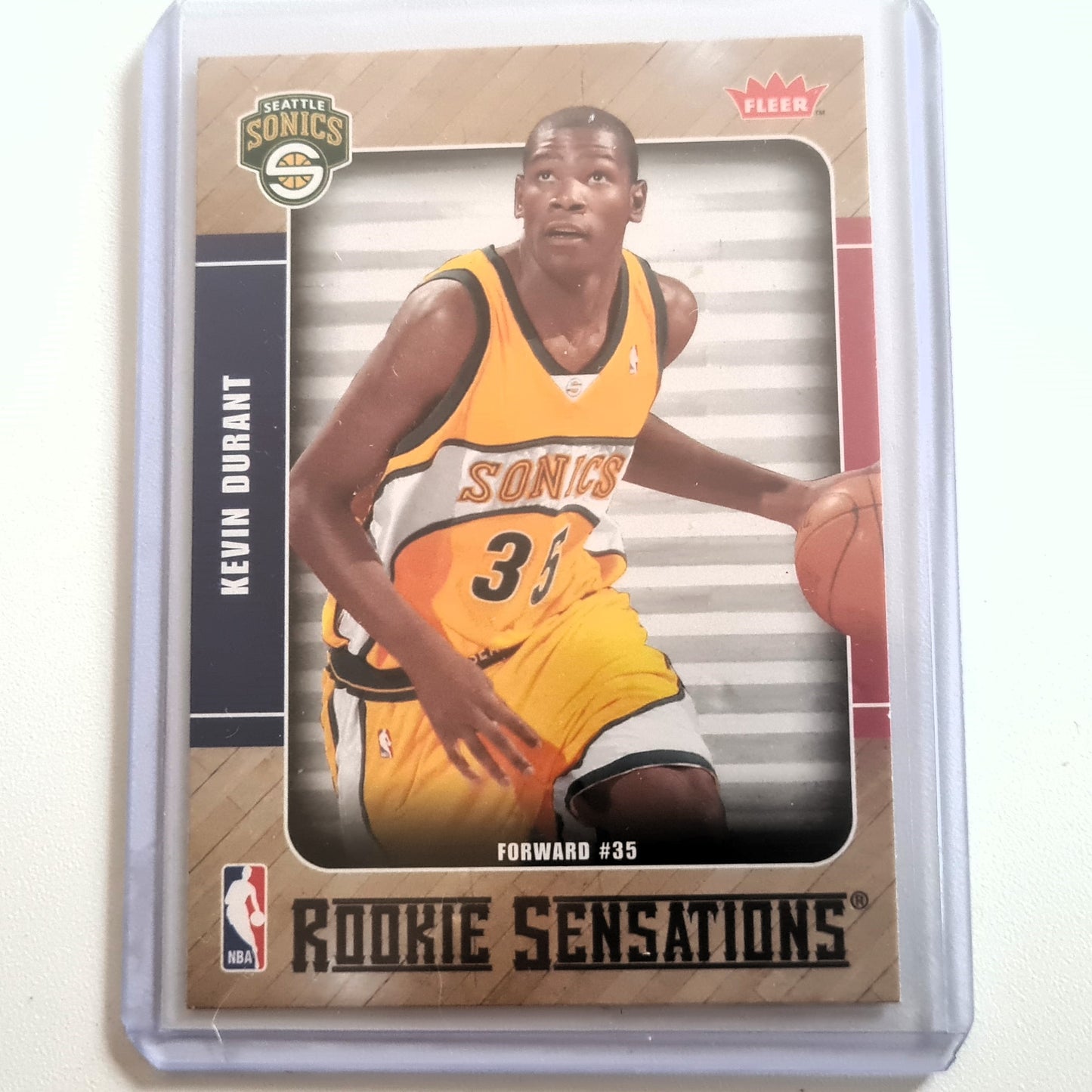 This is your chance to score - literally! Get your hands on the Kevin Durant 2007-08 Fleer Rookie Sensations RS-2 NBA Basketball Seattle Sonics card, in Rise to legendary levels with this piece of basketball history! Collect it, hold it, show it off!