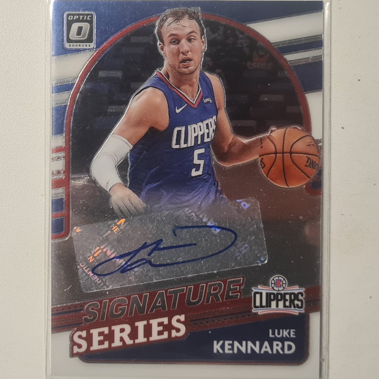 Introducing the Luke Kennard Optic Signature Series Auto SS-LKN, the perfect addition to any NBA Basketball fan's collection. This sleek card features a signature from the Los Angeles Clippers player and comes in excellent condition, protected by a sturdy sleeve. Don't miss out on this exclusive piece of memorabilia.