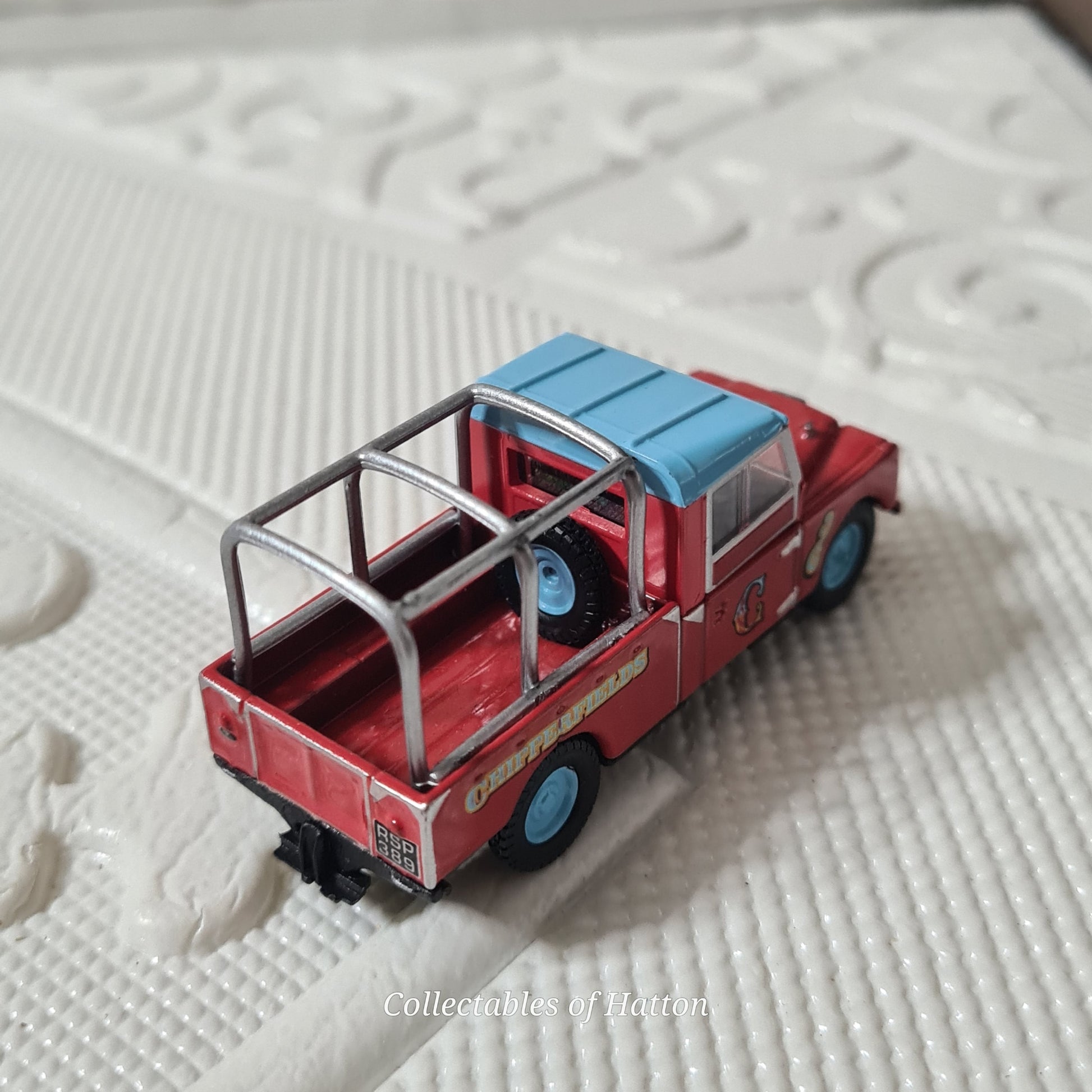 Oxford Diecast's 1:76 scale Land Rover captures the charm of Chipperfields Circus in meticulous detail. This loose model showcases excellent condition with crisp paintwork and authentic livery that brings the iconic travelling circus to life. Perfect for collectors of vintage diecast vehicles, circus memorabilia, or anyone who appreciates quality miniature engineering. A wonderful addition to any collection that celebrates British heritage and classic entertainment history.
