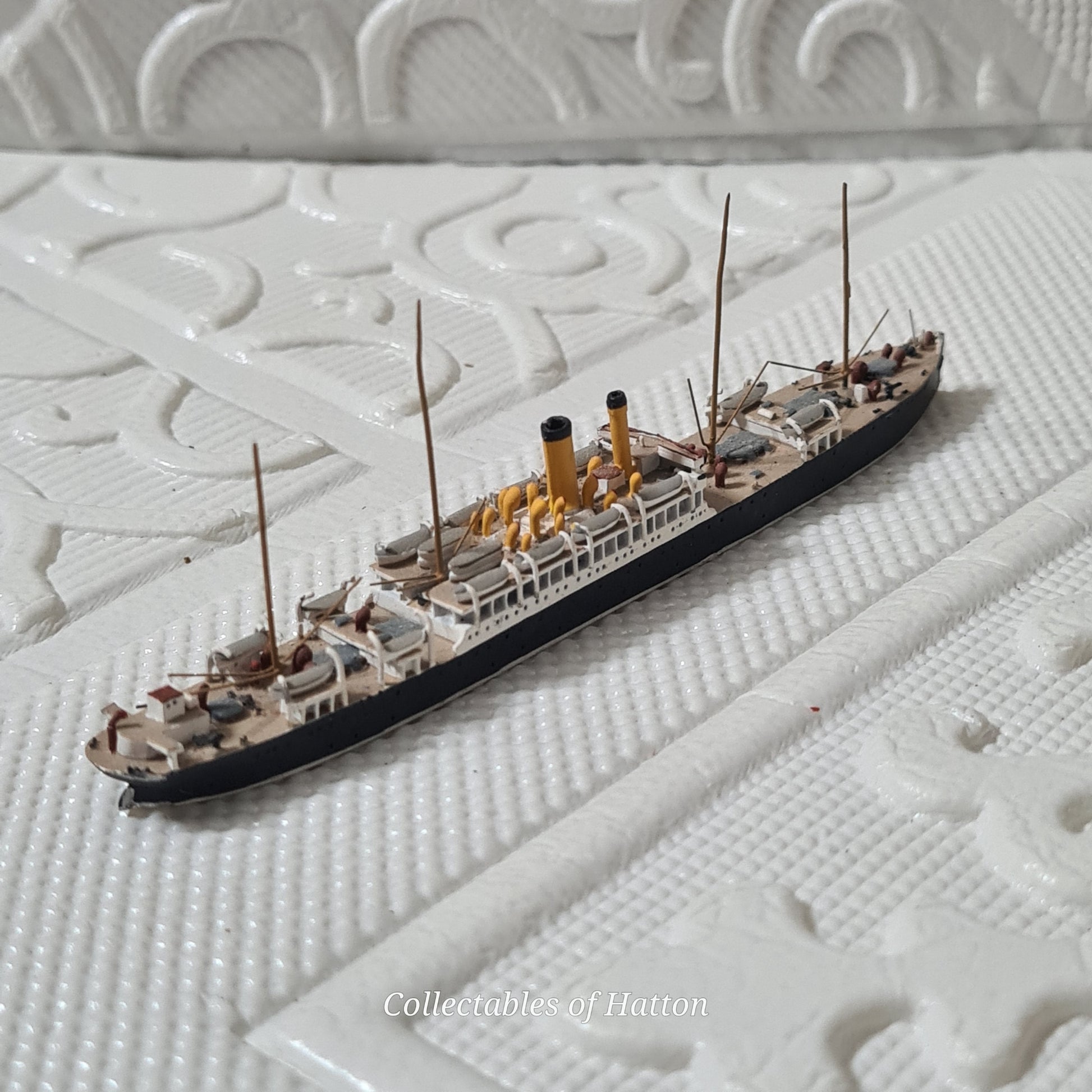 Rhenania GLR's 1:1250 scale Kronstadt is a meticulously crafted white metal waterline model of this iconic Russian vessel. Perfect for serious ship modellers and collectors, this rare piece captures authentic naval detail at an impressive scale. The waterline configuration and fine white metal construction make it an excellent addition to any maritime collection. A sought-after model that combines historical significance with exceptional craftsmanship.