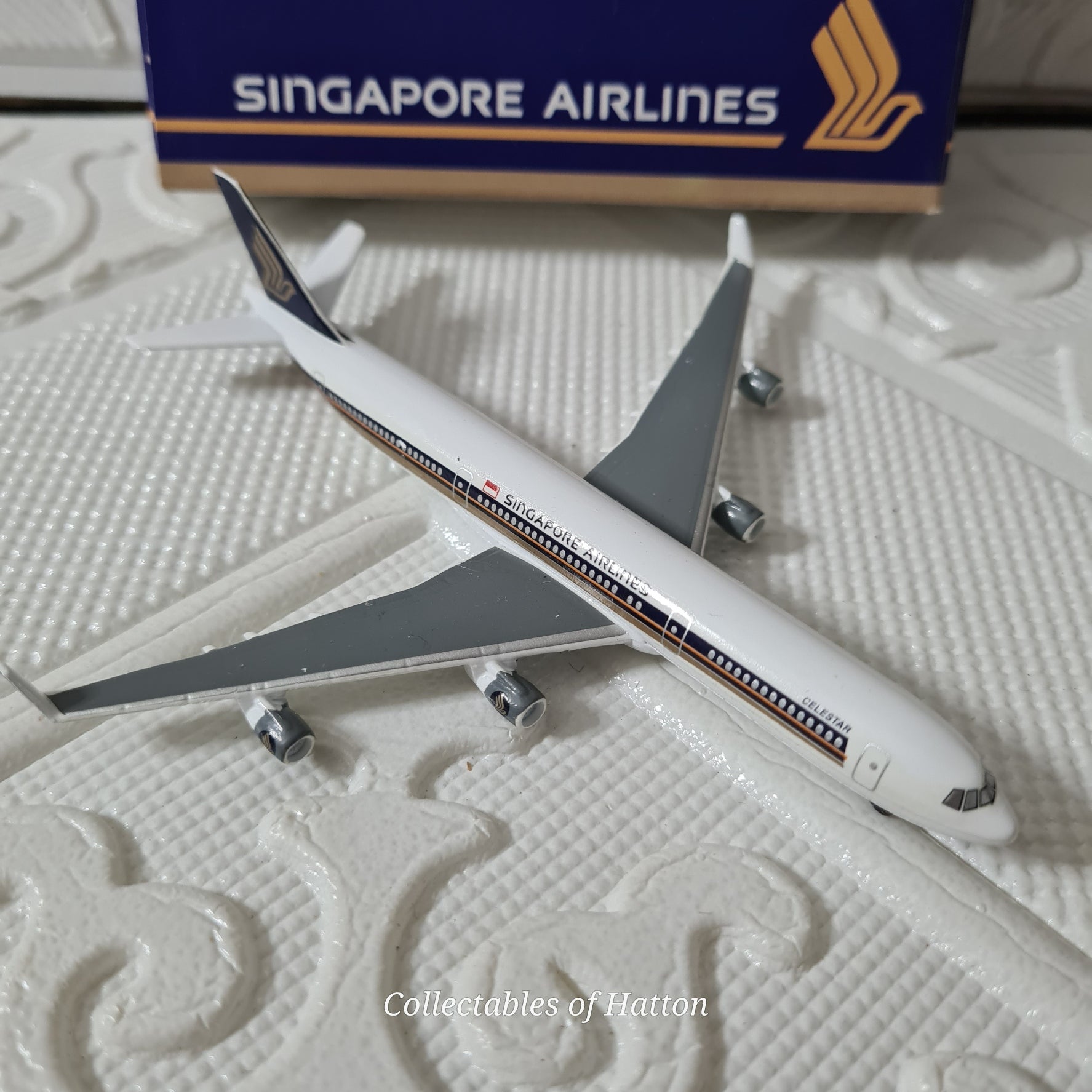 Schabak's precision-engineered 1:600 scale Airbus A340 captures Singapore Airlines' iconic livery with impressive detail. This German-made diecast model features authentic markings and proportions, making it a standout addition to any aviation collection. The original box ensures safe storage and display appeal. Excellent condition throughout, this vintage piece (955/51) represents quality craftsmanship from a respected European manufacturer. Perfect for collectors seeking authentic, well-preserved aircraft models.