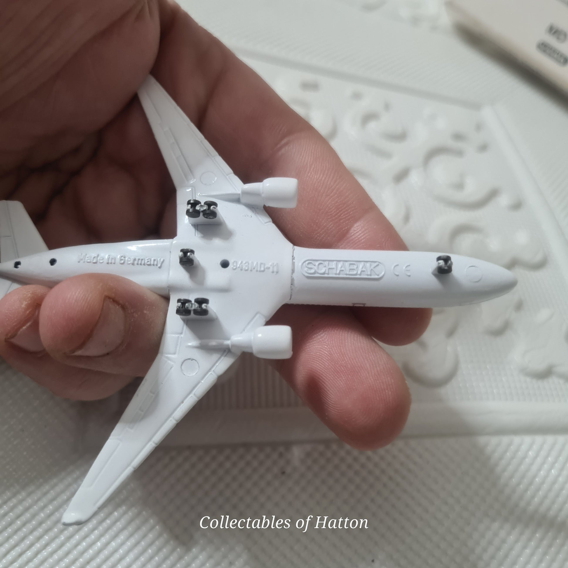 Schabak's 1:600 scale MD-11 diecast model captures Garuda Indonesia's iconic livery with impressive detail. This German-made collectible features authentic markings and comes in its original box, making it a treasured addition to any aviation enthusiast's collection. The precision engineering and vibrant paint scheme reflect the quality Schabak is known for. Perfect for display or as a gift for plane lovers and model collectors alike.