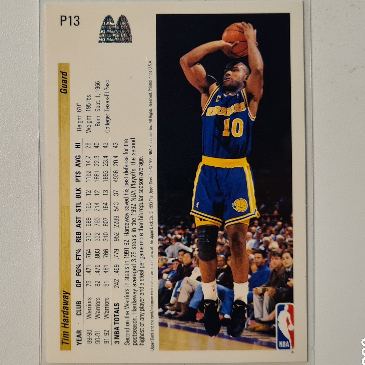 Tim Hardaway 1993 Upper-Deck McDonalds Happy Meal Promo P13 NBA Basketball Indiana Pacers Very good Sleeved