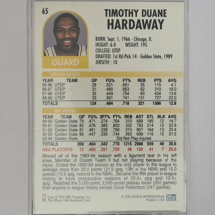 Tim Hardaway 1994 Skybox NBA Hoops #65 NBA Basketball Golden State Warriors very good