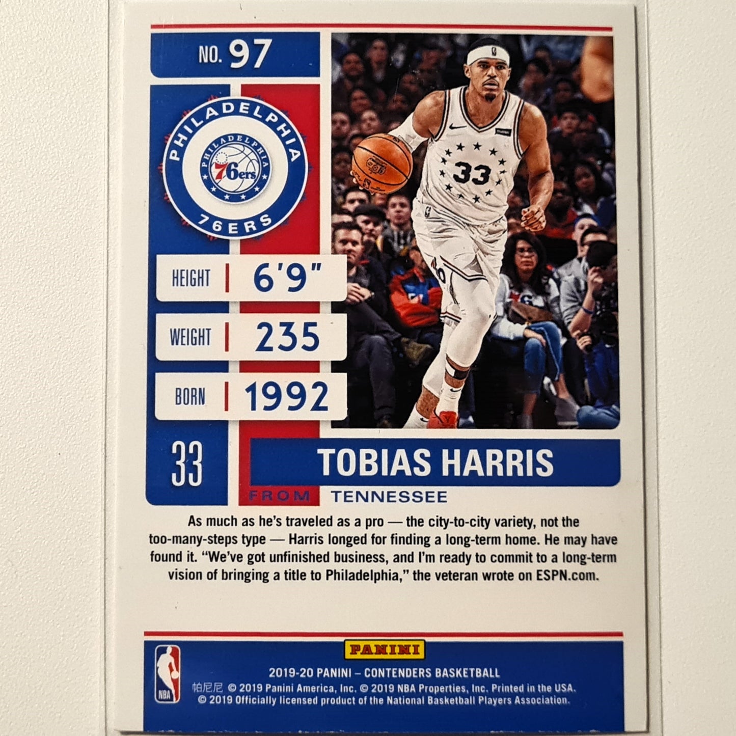 Tobias Harris 2019-20 Panini Contenders Green text #97 NBA Basketball Philadelphia 76ers Excellent-Mint Sleeved