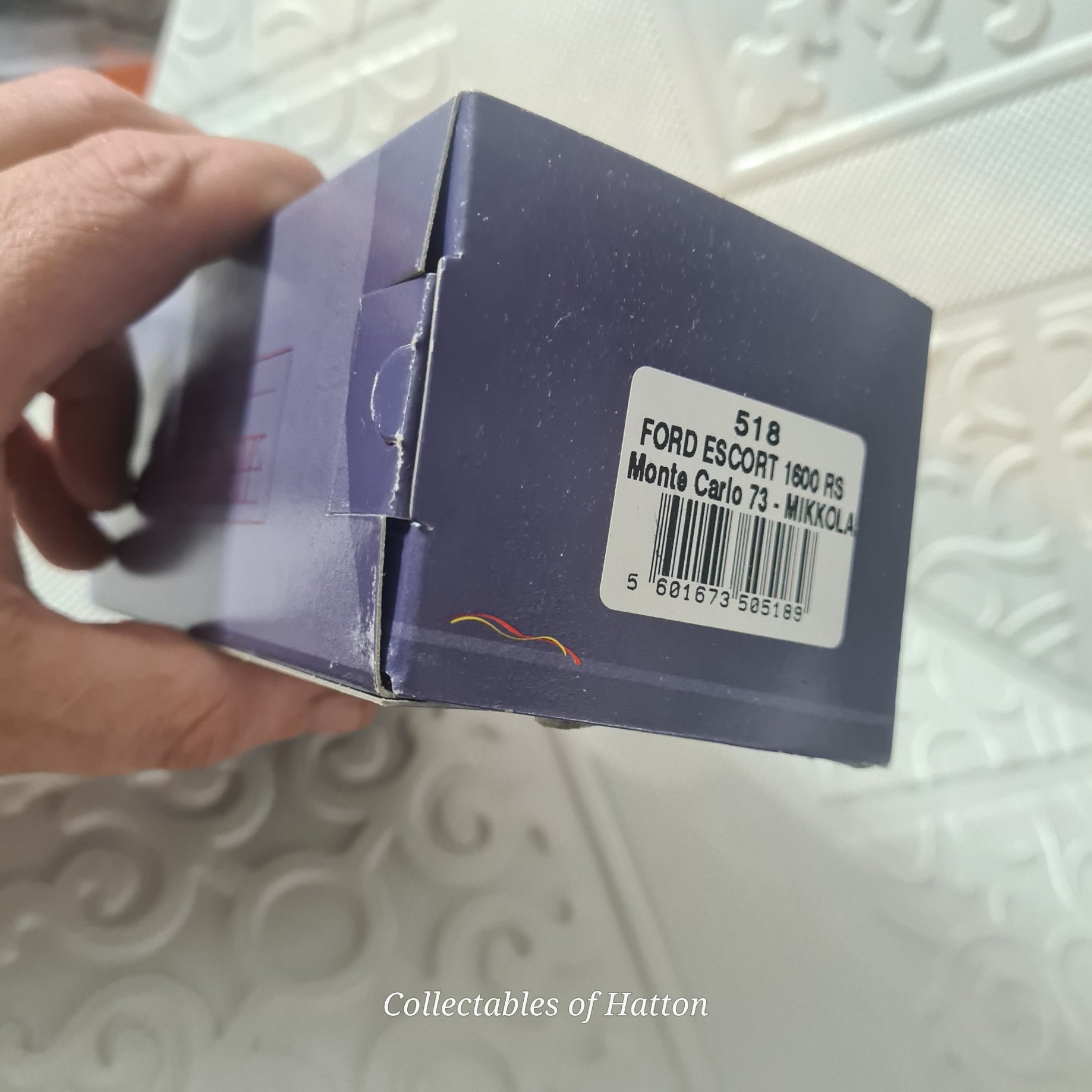 This exceptional Trofeu 1:43 scale model captures the iconic Ford Escort 1600 RS that dominated the 1973 Monte Carlo Rally. Featuring authentic blue and white livery honouring Hannu Mikkola's legendary performance, this die-cast replica showcases meticulous detail and craftsmanship. Presented in its original box in very good condition, it's a prized addition for rally enthusiasts and collectors who appreciate automotive history. A stunning tribute to one of motorsport's most celebrated victories.