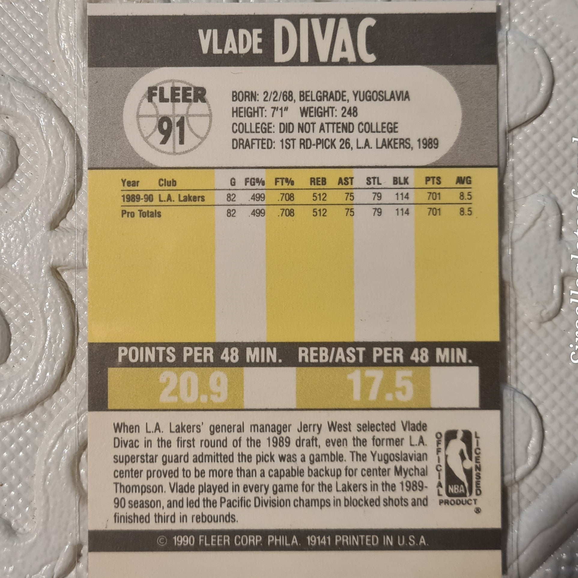 Vlade Divac 1990 Fleer 91 NBA Basketball LA Lakers Excellent to mint Sleeved