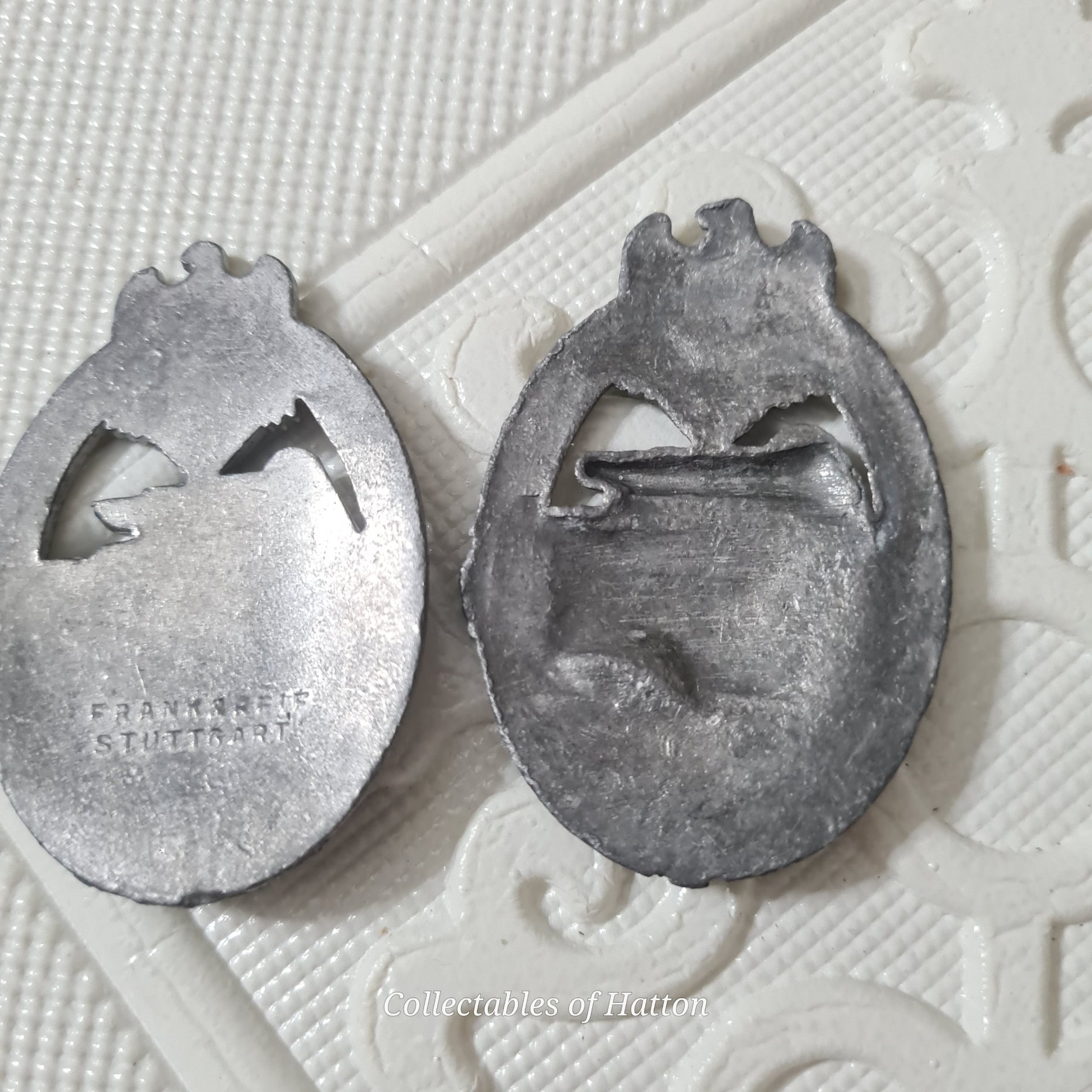 WW2 Panzer assault German Badge stamped Frank & Reif Stuttgart ( no pin) silver colour stamped with the Stuttgart manufacturer Frank & Reif. This silver-coloured Panzer assault insignia represents a significant piece of World War II military memorabilia. a nice addition for collectors of German military history. Please note: this badge does not include an original pin attachment.